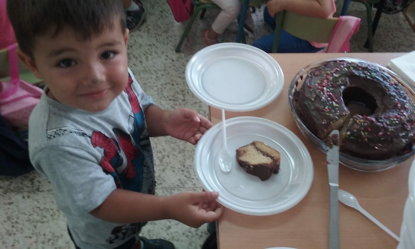 IVÁN NOS HA HECHO UN REGALO MUY ESPECIAL: UN BIZCOCHO REALIZADO POR SU ABUELA Y ÉL MISMO.